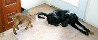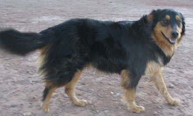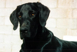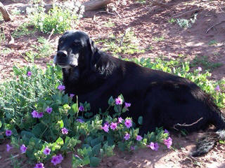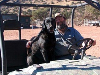 Bosco, DOB 2/8/00 is the perpetual baby and our "all-purpose ranch dog". He's a black lab mix with a innate ability to be able to figure out any situation and do exactly what he's asked to. He loves to run constantly for miles and miles at a time and chasing jack rabbits is a favorite past time. He has greatly improved his skill at getting through barbed wire during his time here - he had more than 25 stitches in various places over his body during his first few months here (but none at all for a while). In 11/01 we purchased a veterinary skin stapler in anticipation of Bosco's next major boo-boo but he has delighted us for having not had to use it... yet.