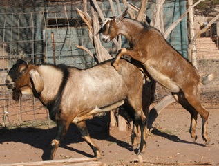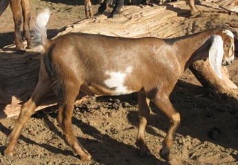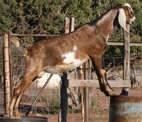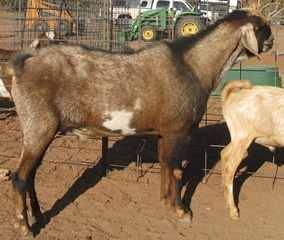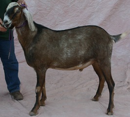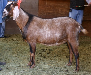 Our wonderful herd sire, Rio, is getting old and starting to slow down. So we are very excited to keep this son of his. Boe is a delightful young man, friendly and handsome. He is a great blending of two exceptionally fine animals. He has been accepted into the American Dairy Goat Association's Sire Development Program. This program selects young bucks that they believe to have the potential of being exceptional sires. We can't wait to put their predictions to the test!