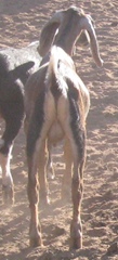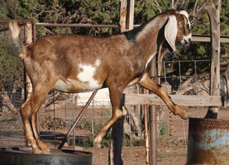 Boe is a yearling now and really looks like it. He is growing well, but is still a baby at heart. He loves playing with the younger bucks and running circles around “old man” ExO. He is a very happy, easy going boy.